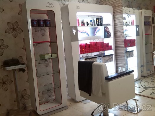 Nabízím k prodeji kompletní vybavení do kadeřnickéhosalonu. Komplet obsahuje:1x recepce,2x kadeřnické křeslo,1x kadeřnická obsluha se zrcadlem,1x mycí box,1x dětská židle na stříhání,1x pojízdný vozík, 1x podnožník, 1x velký osvětlený stojan,1x malý stojan,1x malá kuchyňská linka na přípravu materiálu,polička,2x křeslo a konferenční stolek. Vše barevně laděné.